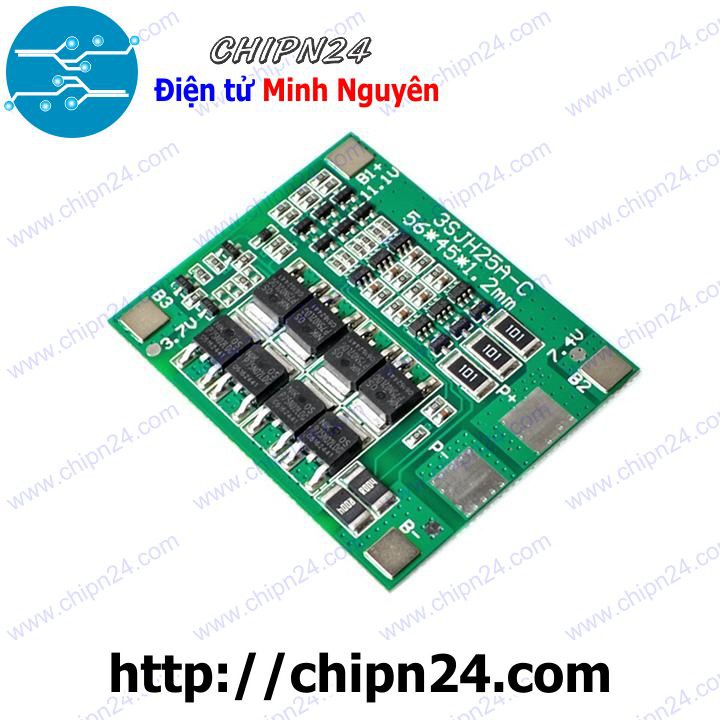 Mạch sạc pin 3S 18650 25A hay còn gọi Mạch sạc bảo vệ nối tiếp 3 cell 18650 25A có chức năng- sạc và bảo vệ 3 cell pin mắc nối tiếp