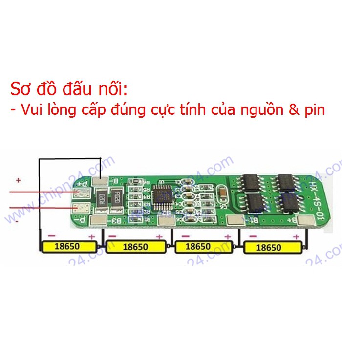 - Mạch sạc pin nối tiếp 4 cell 18650.