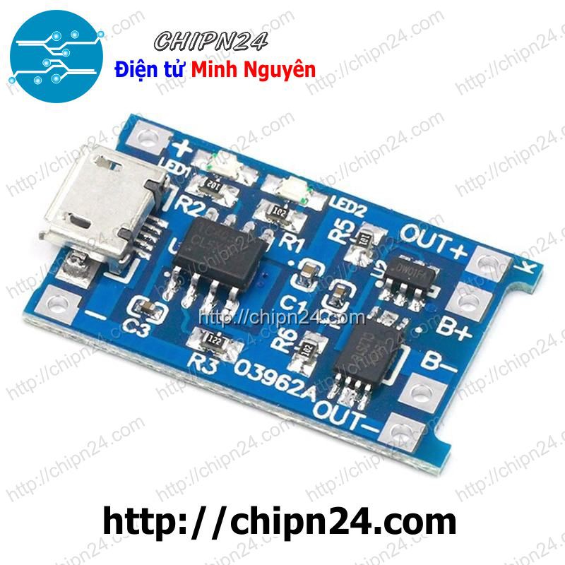 [1 CÁI] Mạch Sạc Pin TP4056 1A Cổng Micro USB có Mạch bảo vệ (Mạch sạc pin 18650)