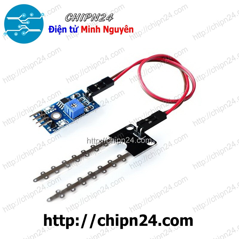 - Cảm biến phát hiện độ ẩm đất, bình thường đầu ra mức thấp, khi đất thiếu nước đầu ra sẽ mức cao. Module có thể sử dụng để tưới nước tự động