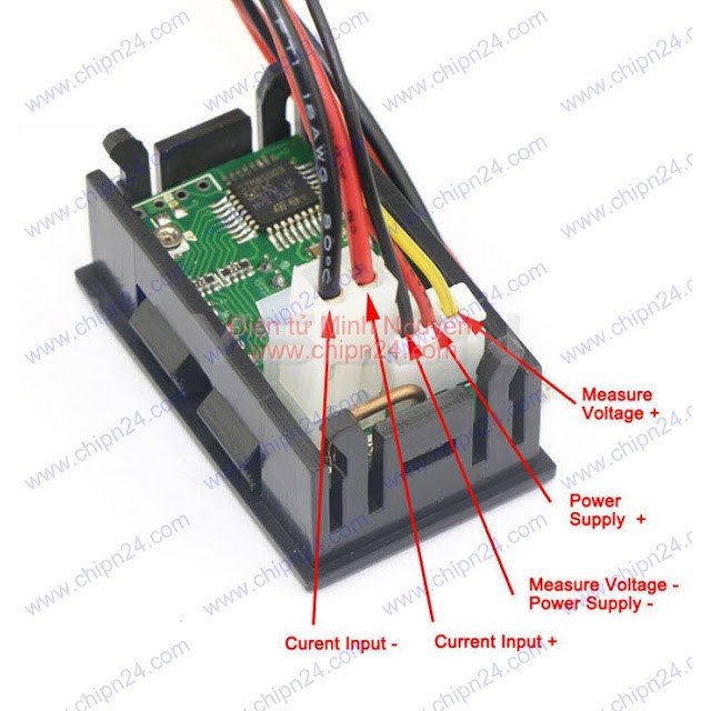 Module Đo Dòng Áp 0-100V 10AĐồng Hồ Đo 0-100VDC/0-10A Hiển Thị Volt/Ampe hiển thị LED đỏ là vôn, LED xanh dương hiển thị Ampe, được tích hợp cả 2 hàng lên đồng hồ, đồng hồ đo vôn/ampe được thiết kế với mass chung.