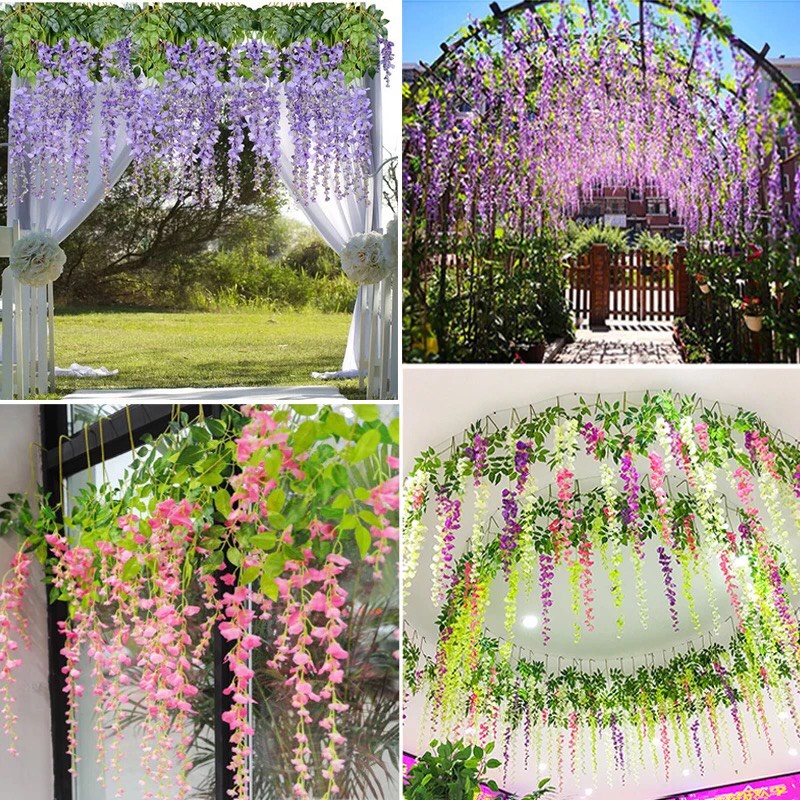 Hoa FUJI còn có tên gọi khác là hoa tử đằng, hoa wisteria, sợi hoa dài rũ mềm mại rất phù hợp trang trí tường, quán cafe, nhà hàng, sự kiện...