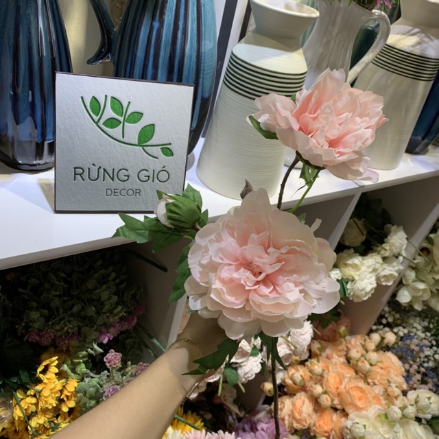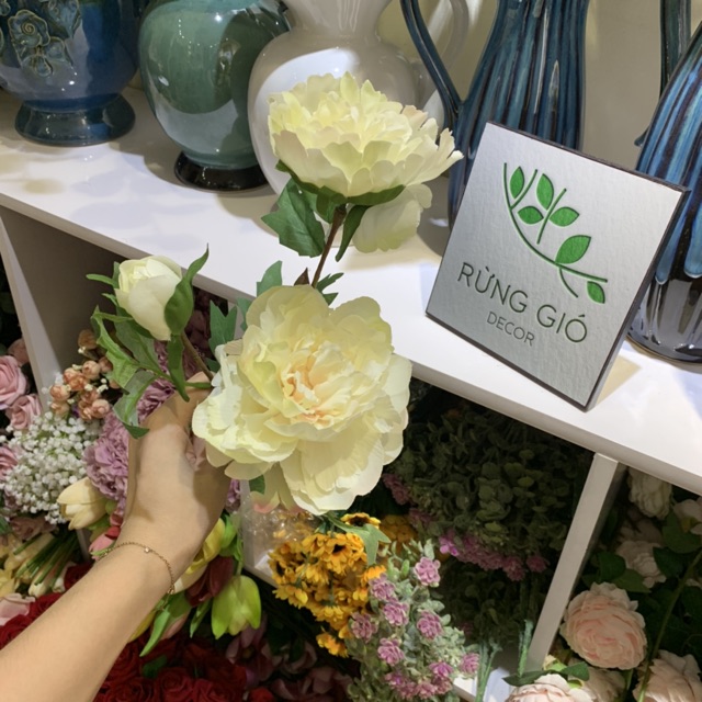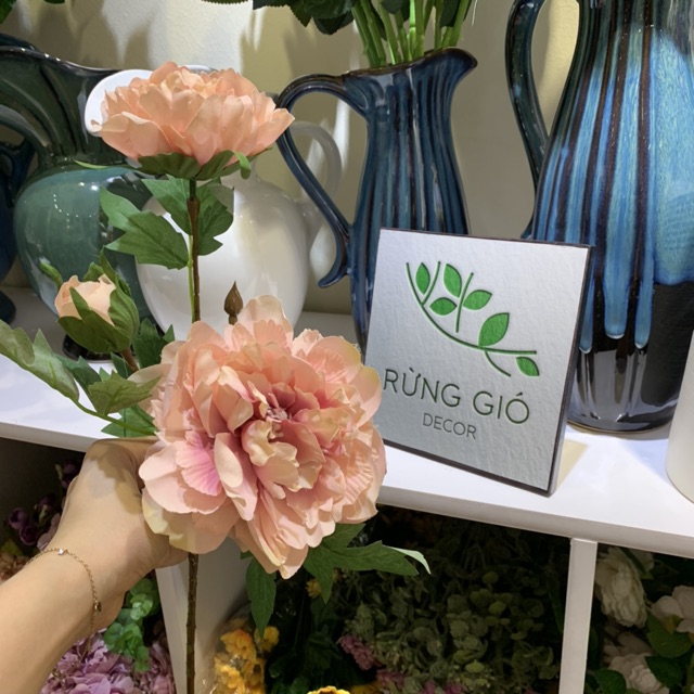 Nhà cửa & Đời sống > Trang trí nhà cửa > Hoa trang trí || 1 cành hoa Mẫu Đơn SIZE to vừa dài 52cm, gồm 2 bông 1 nụ - hoa giả giống thật - có ảnh thật, nhiều màuCòn hàng