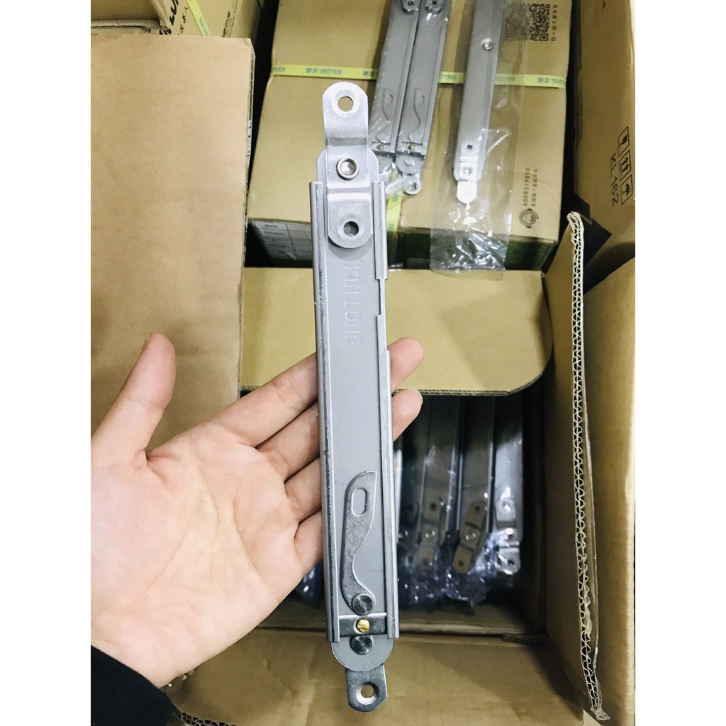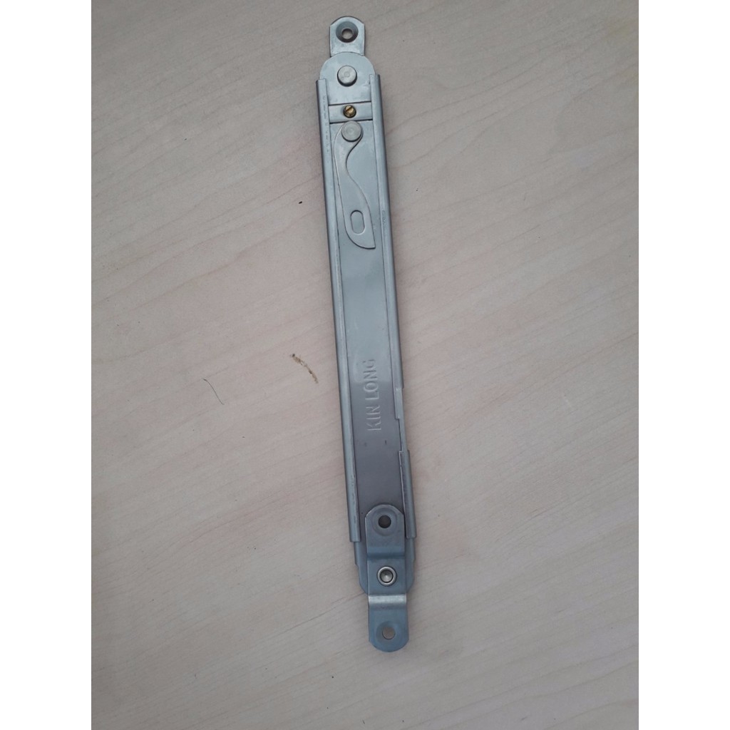 Chống gió cửa sổ bật hiệu KinLong – SC320 dùng cho cửa sổ mở hất ra ngoài (mở bật) nhôm Xingfa hệ 55. Đối với các cửa sổ mở hất ra ngoài có kích thước cao mà bản lề chữ A HC400A không đủ giử cửa ở trạng thái mở thì chống gió (hay còn gọi là thanh hạn vị góc mở, chống sao) sẽ giải quyết vần đề này. Thanh chống gió này cũng góp phần hạn vị lại góc mở, an toàn cho các cửa ở vị trí cao, và góp phần chống gió giật đập cửa, gió mạnh vẫn không bị giật cửa. Chất liệu Inox 304 chống gỉ sét, có đệm nhựa giúp đóng mở êm không bị ăn mòn và bền với thời gian.Một cánh cửa mở quay dùng 2 cái chống gió SC320