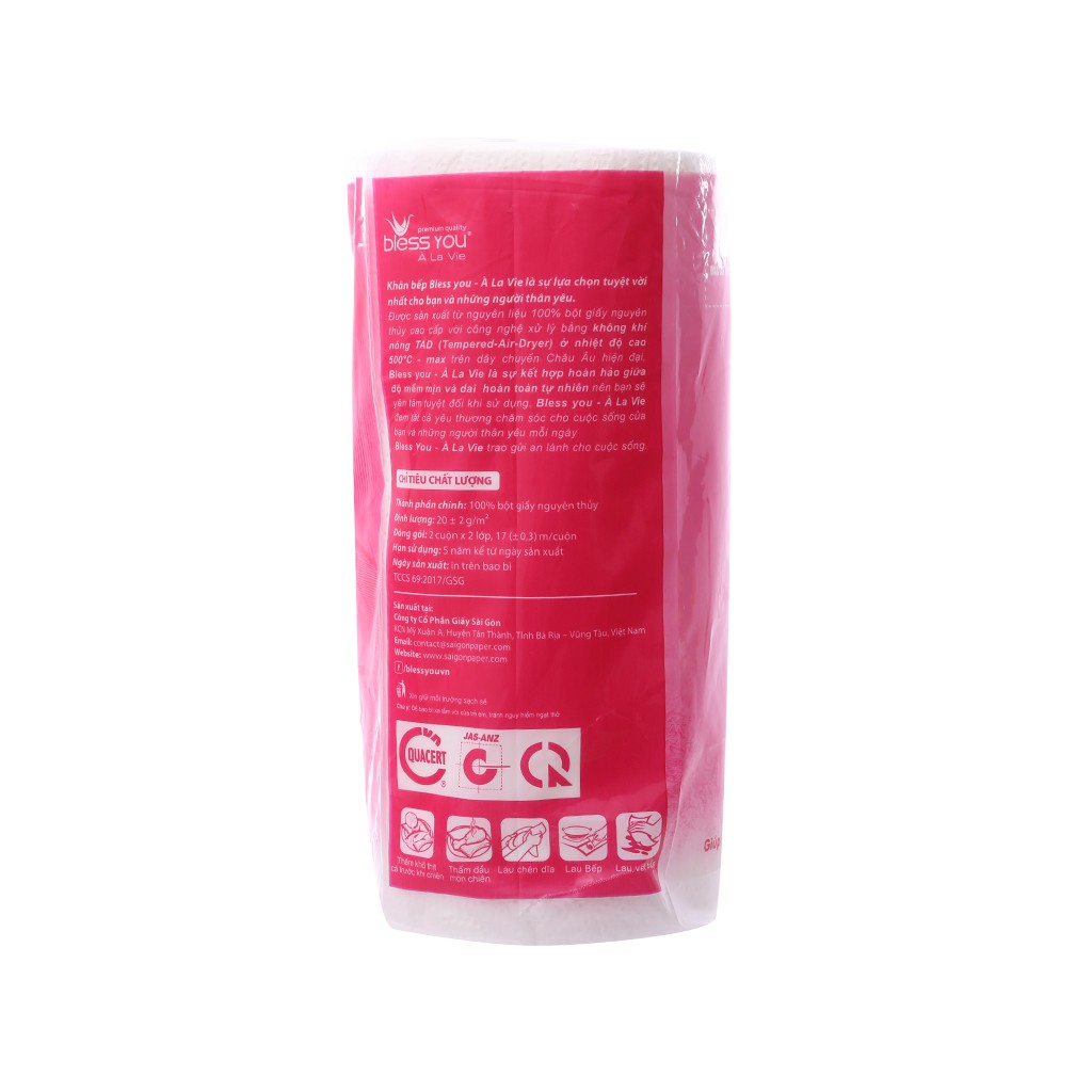 Khăn Bếp Bless You (2 Cuộn)Là sự lựa chọn tuyệt vời nhất cho bạn và những người thân yêu. Sản phẩm được làm bằng 100 % bột giấy nguyên chất, không chứa các hóa chất độc hại, không gây kích ứng da, đảm bảo an toàn tuyệt đối cho người dùng.