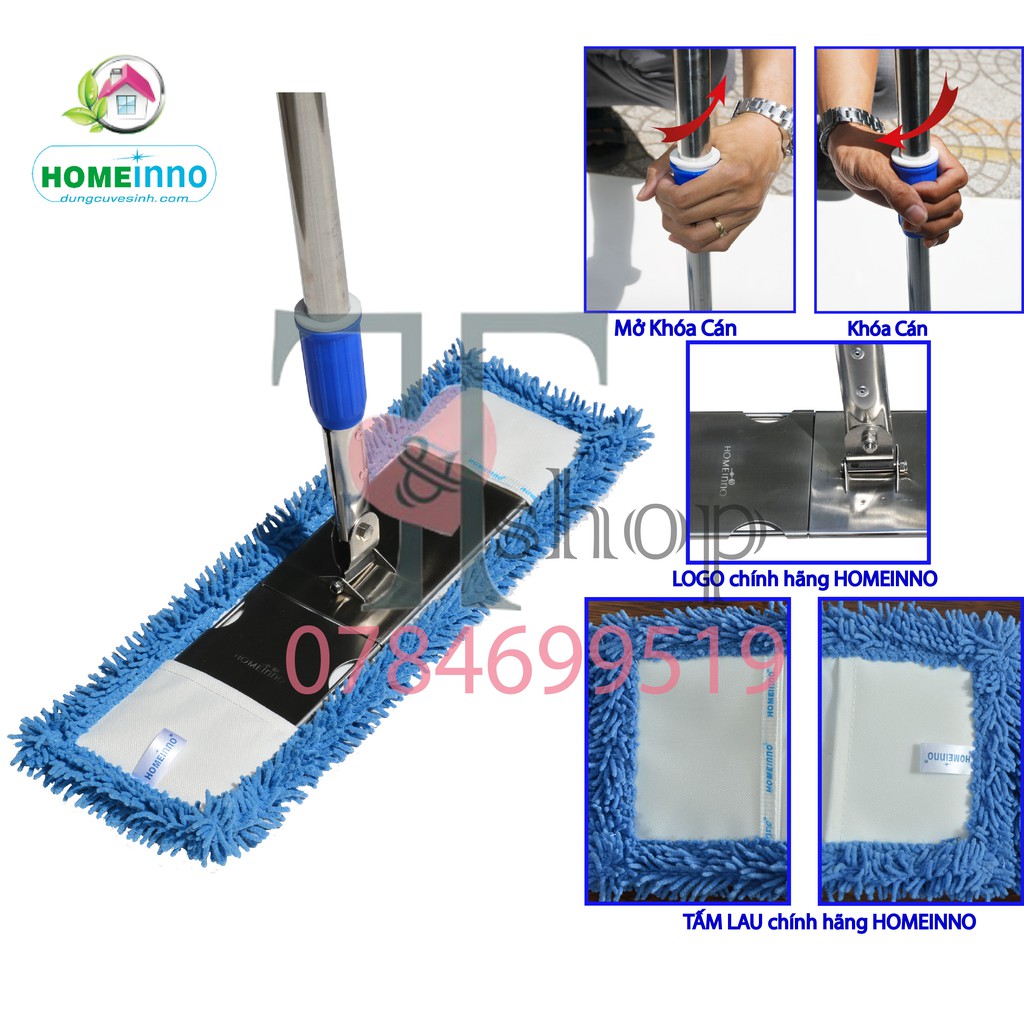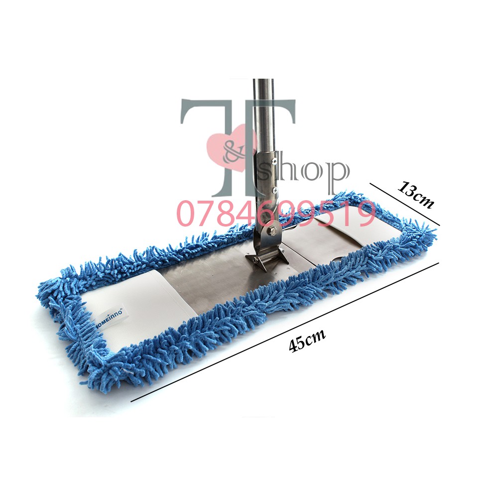 Nhà cửa & Đời sống > Dụng cụ chăm sóc nhà cửa > Cây lau nhà || 1 Cây Lau Nhà Bản Inox 45cm Homeinno Cán Rút + 3 Tấm Lau San Hô Thay ThếCòn hàng