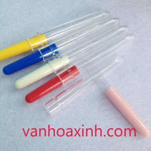 Giá bán: 4.500 đ/ cái (màu sắc khi đặt hàng thì shop sẽ chọn ngẫu nhiên để bán cho khách hàng).Dụng cụ có đầu là 1 sợi dây kim loại rất mảnh và mềm, xỏ dây kim loại này qua lỗ kim (hoặc lỗ hạt) cho đến khi thấy đầu kim loại lọt hẳn qua tạo thành 1 cái lỗ; bước tiếp theo là thả dây chỉ vào lỗ này và dùng tay kéo ngược trở lại, lúc này sợi chỉ sẽ theo dây kim loại đi qua lỗ kim (hoặc lỗ hạt).