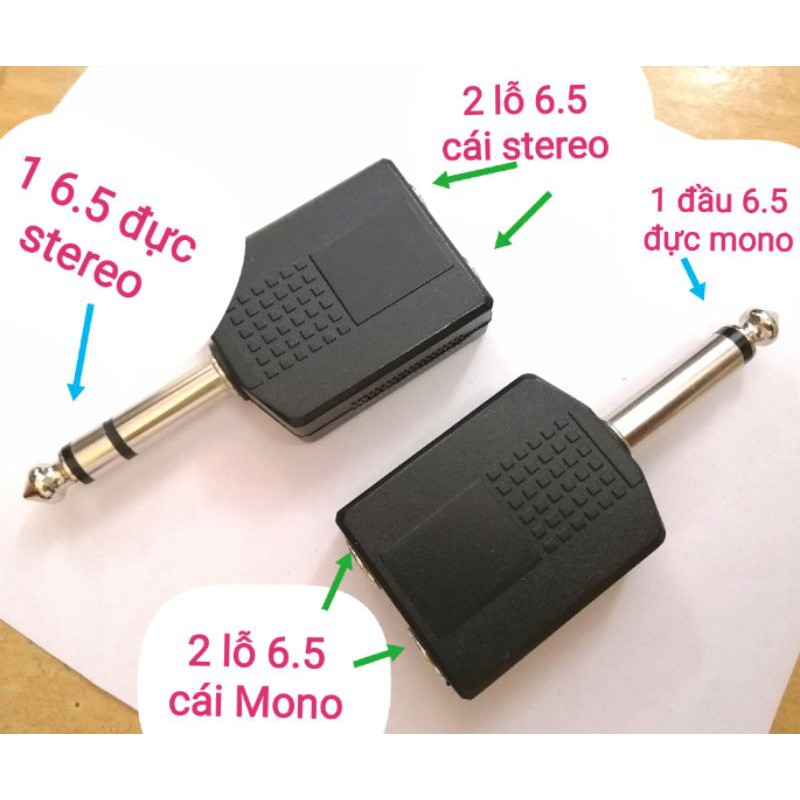 Loại 2 : 1 đầu 6.5mm Stereo đực ra 2 lỗ 6.5 Stereo cái.