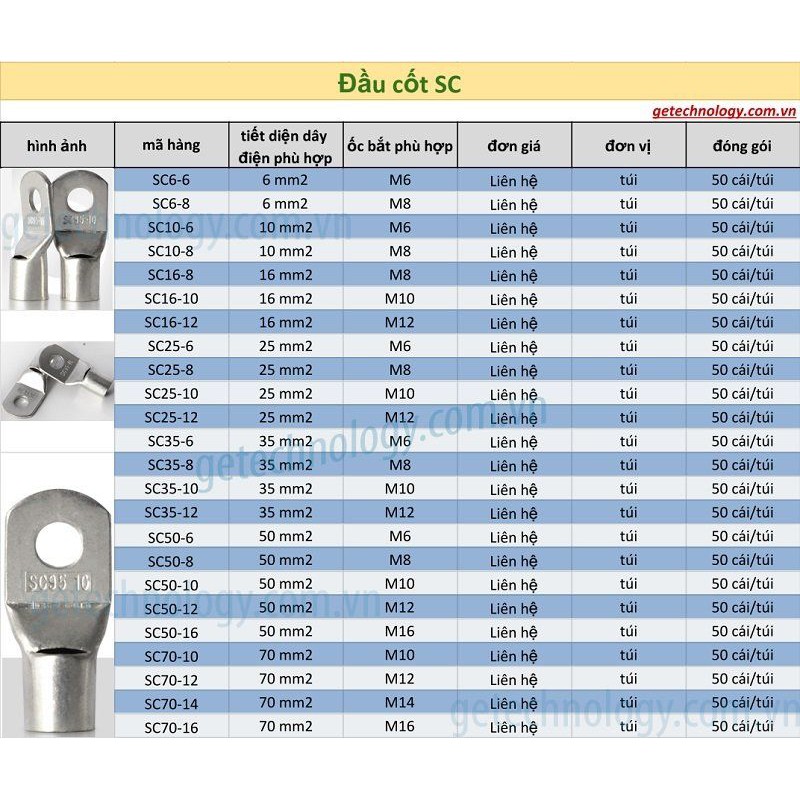 1 chiếc Đầu cốt trần, ĐẦU CỐT ĐỒNG SC6-6 SC6-8 SC10-6 SC10-8 VÀ SC16-8 SC16-10Có các model cụ thể như sau: