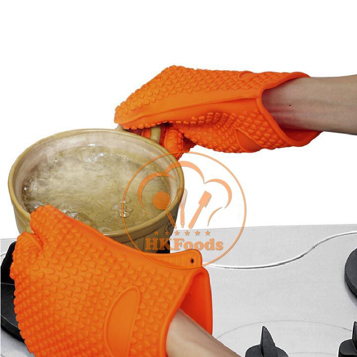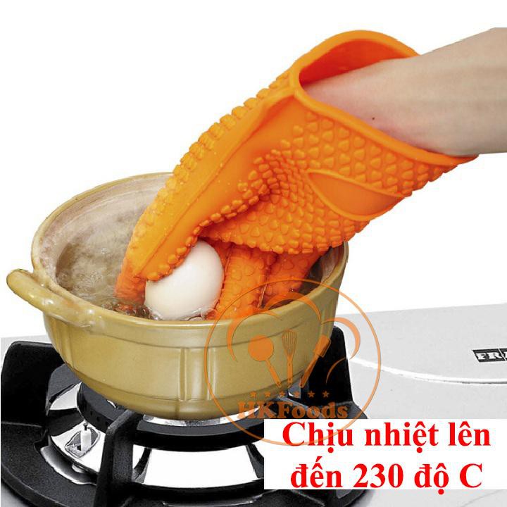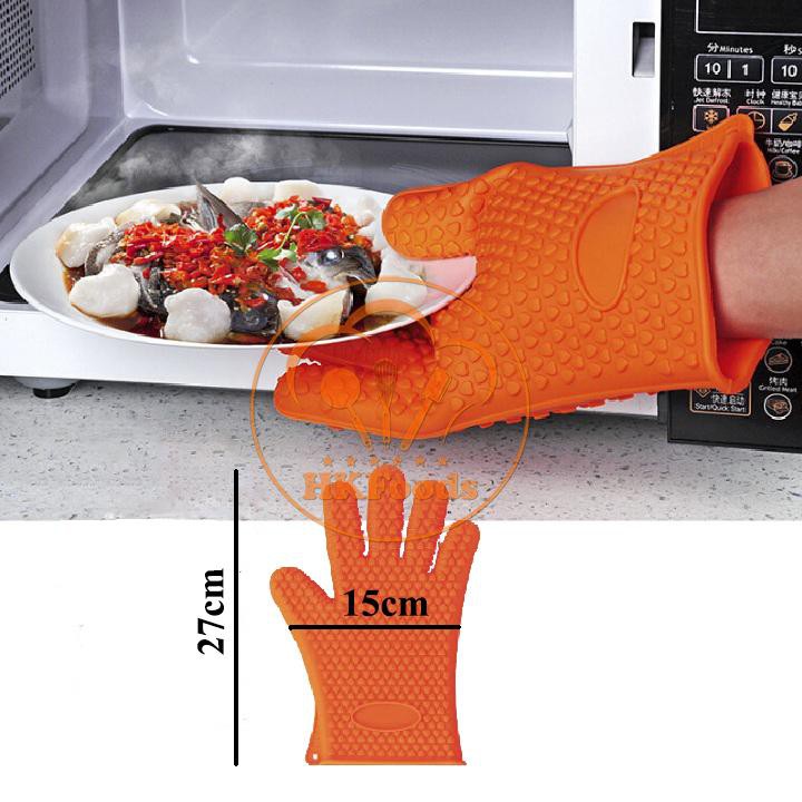 Làm bằng silicon an toàn cho người sử dụng, kích thước 27x15cm rất vừa phải.Găng tay chịu nhiệt độ từ -30C đến +235C ( tức chịu nhiệt độ thoải mái từ đá và các loại nước sôi, thịt nướng trên bếp…)