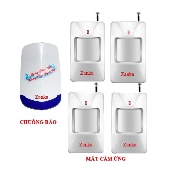 Bộ 1 chuông- 3 MẮT cảm ứng báo khách- báo trộm không dây đa năng Zanka TP717-IV