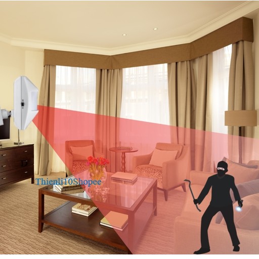 - Góc quét của cảm biến là khoảng 120 độ ngang - cao 30 độ , tầm quét xa đến người là từ 4- 6 mét . Lưu ý là cảm biến sẽ quét tất cả các chuyển động như : người , con vật như chó mèo , xe cộ di chuyển , cành cây rung mạnh …