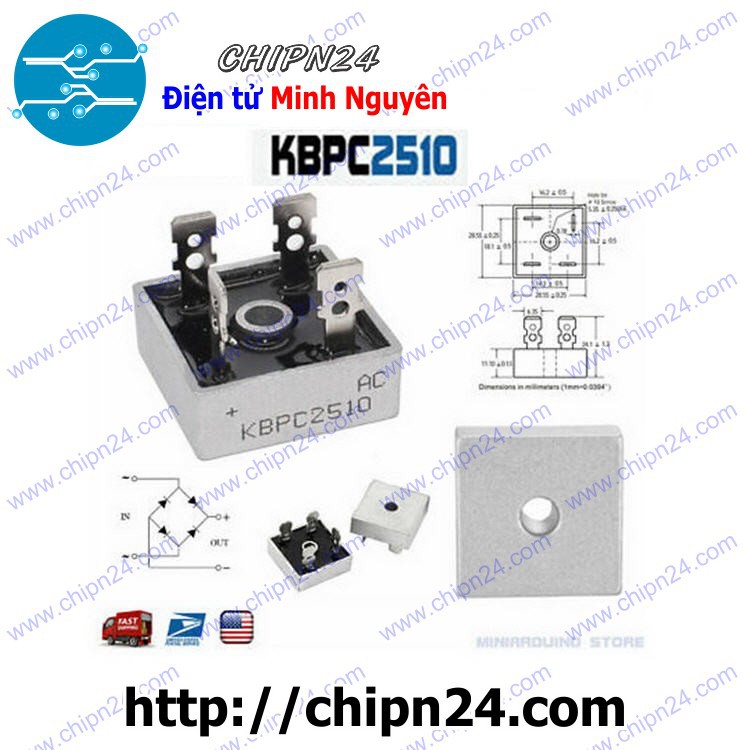 Thiết Bị Âm Thanh > Khác || [1 CON] Cầu Diode KBPC2510 25A 1000V (25A vuông)Còn hàng