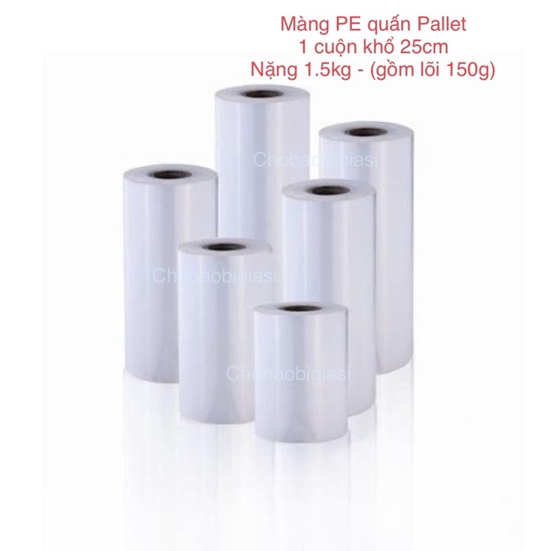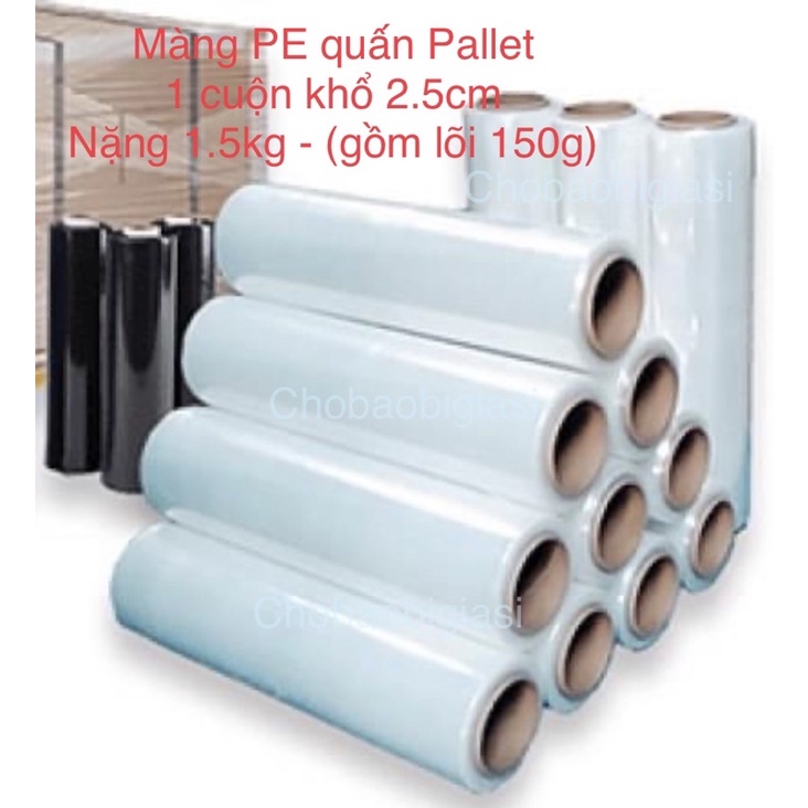 1 cuộn 1.5 kg Màng PE quấn Pallet khổ 25cm (gồm lõi 150g) chắc chắn, không đứt khi quấn