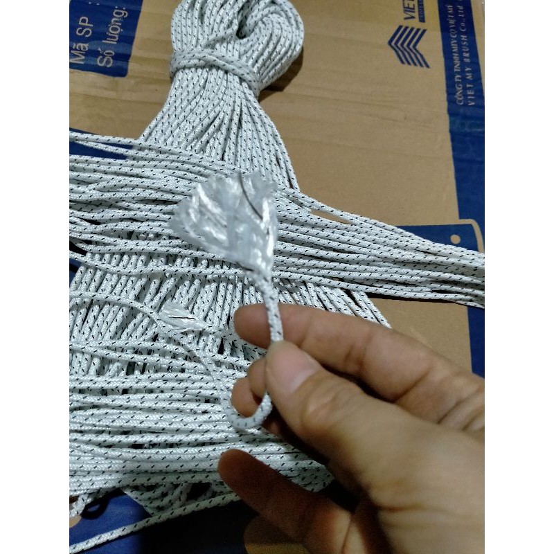 Dây dù sợi Polyester dẻo dai, bền bỉ, khó đứt. Dây trắng đốm hạt mè đenDây 2,7mm phù hợp dùng để kéo rèm, câu cá lớn, đan ghế, quấn chai lọ để trang trí, cột đồ...