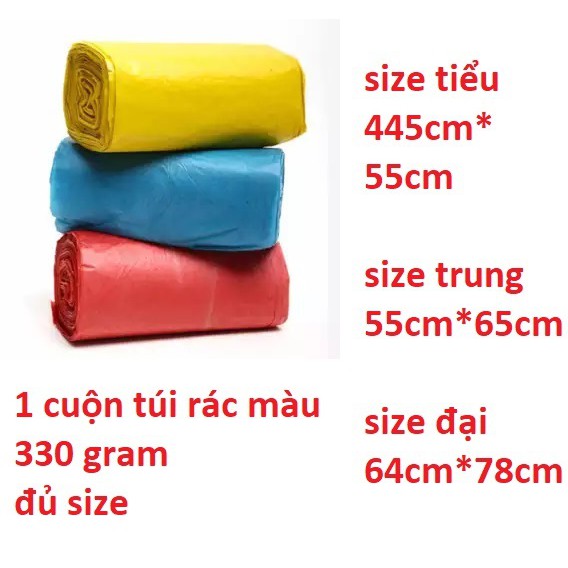 1 cuộn túi đựng rác màu tự phân hủy không nhám đủ size** lưu ý khi mua hàng 1 cuộn shop xé lẻ ra bán không lựa chọn màu . không có bao bì bên ngoài .