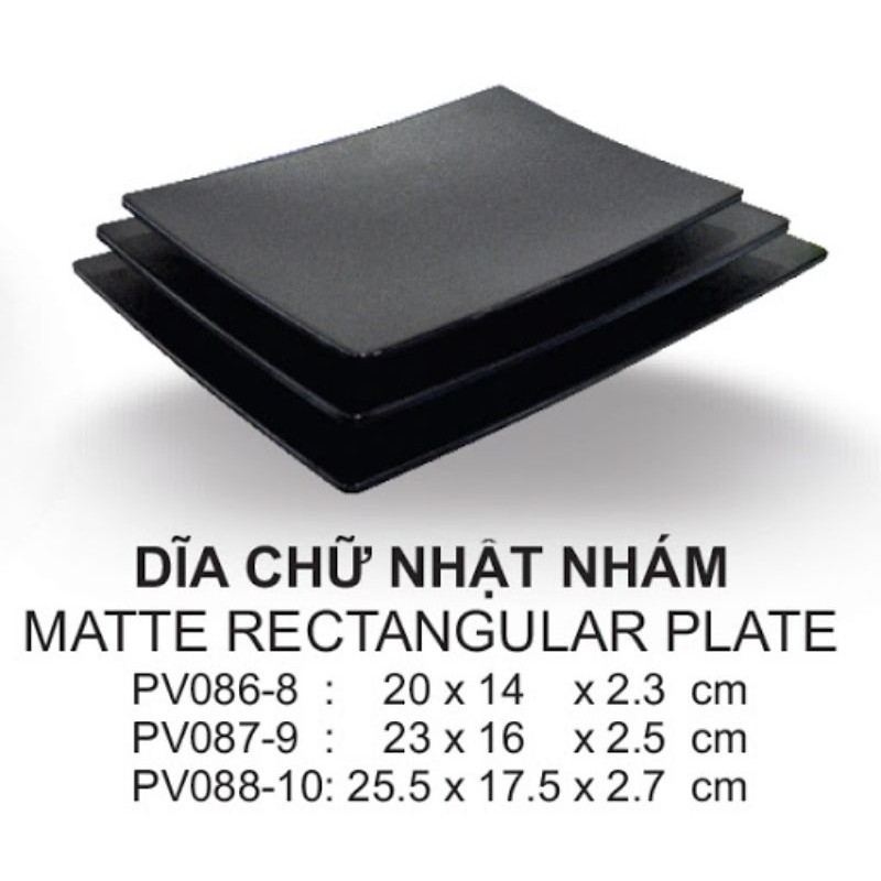 1 Dĩa Chữ Nhật Nhám (Đen + nâu cafe ) -thái lan Superware