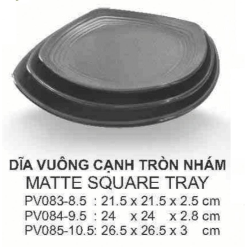 1 ĐĨA VUÔNG CẠNH TRÒN ĐEN NHÁM + NÂU CAFE THÁI LAN SUPERWARE