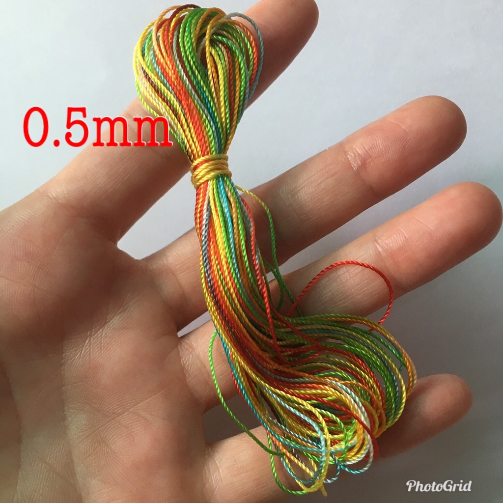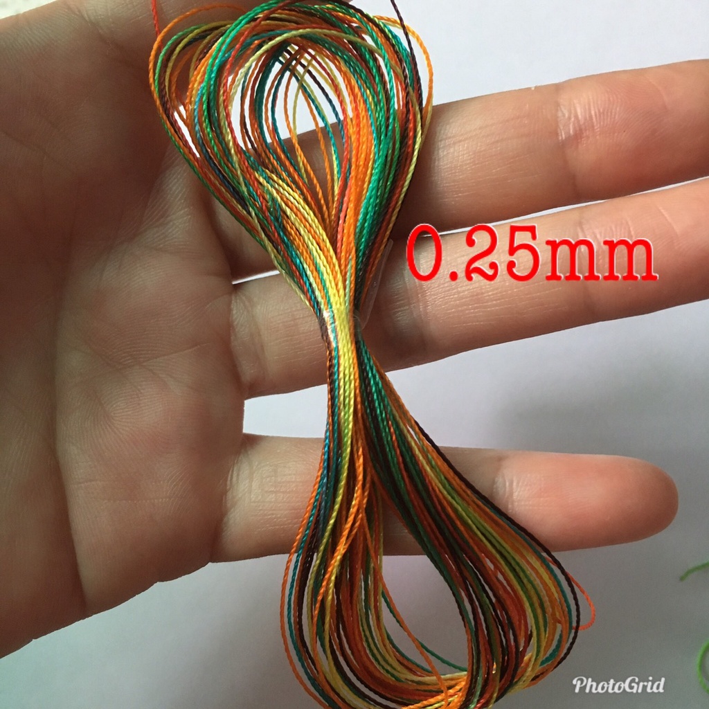 1 đoạn 10m chỉ dù bóng polyester cord đổi màu size nhỏ 0.25-0.8mm