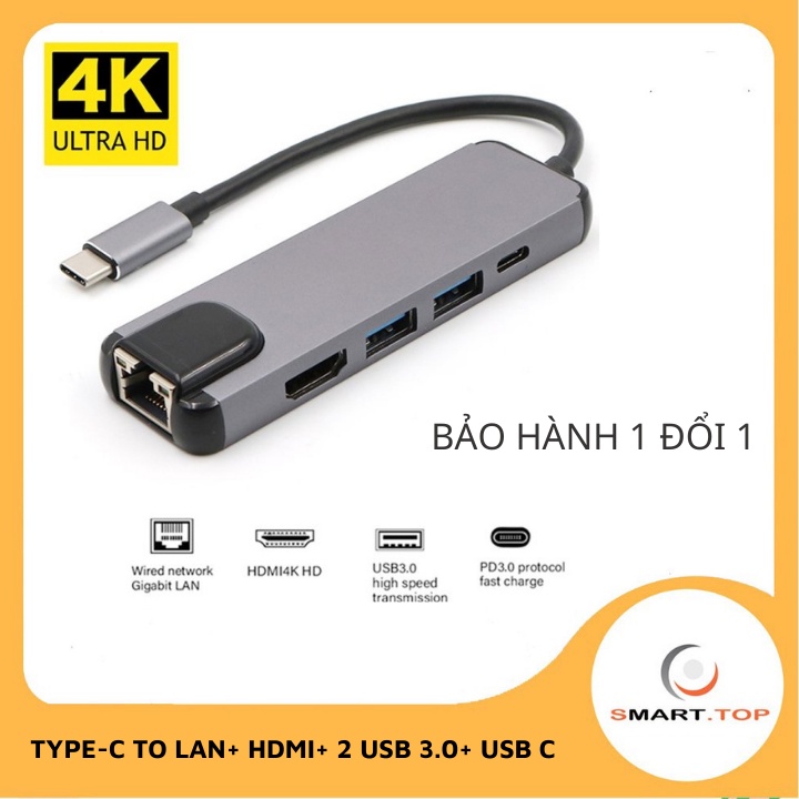 🎁Cáp chuyển đổi Type C Sang HDMI 4K, 2 USB 3.0, Lan (RJ45), USB C Cao cấp ⚡️Bảo hành 1 đổi 1⚡️⚡️THÔNG TIN SẢN PHẨM:
