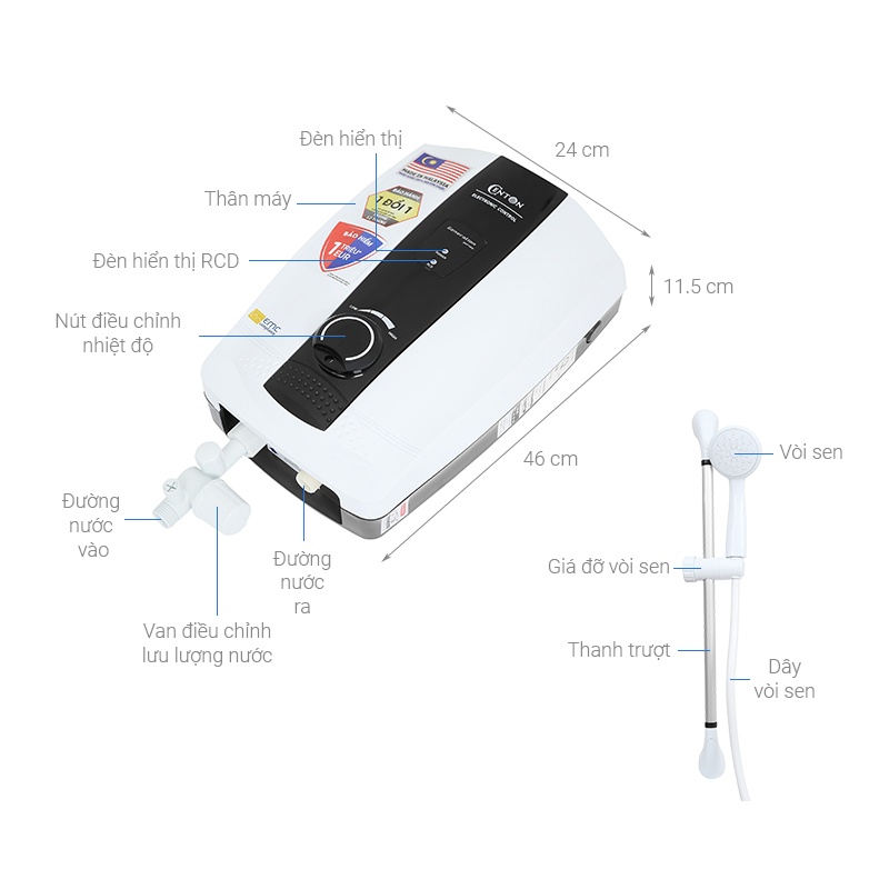 [1 đổi 1] Máy nước nóng trực tiếp Centon 8338E(WH8338E) - Centon 8338EP(WH8338EP) - Centon WH8338