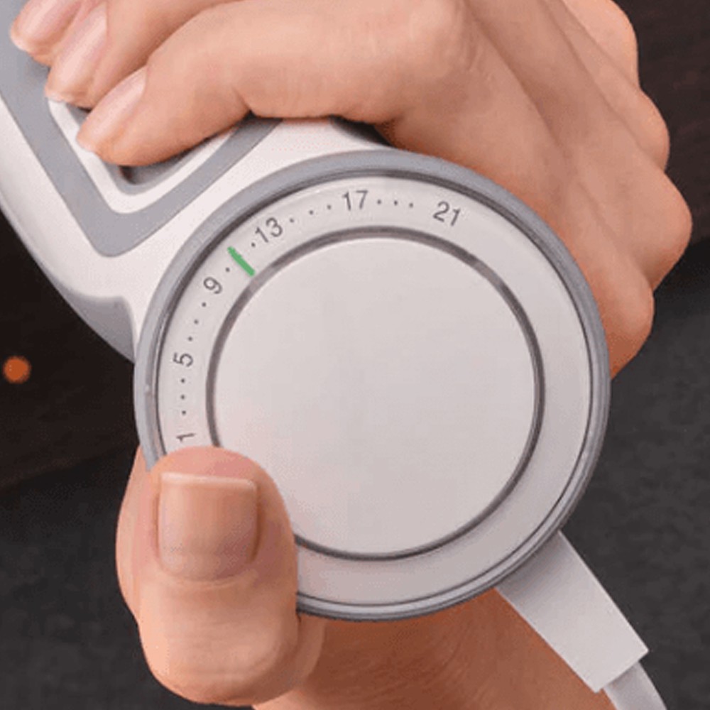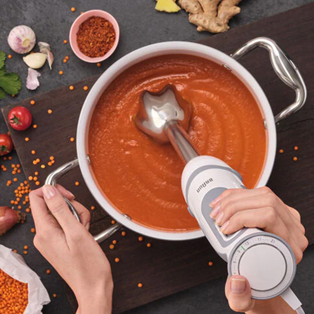 Máy có kết cấu rất đơn giản, với phần tay cầm nhỏ gọn với lòng bàn tay, ở phần trên đầu là 21 tốc độ được điều chỉnh bằng cách xoay vòng bằng ngón tay cái, giúp người dùng có thể dễ dàng chủ động thay đổi tốc độ xay để làm nên một sản phẩm xay mịn nhuyễn hoàn hảo.