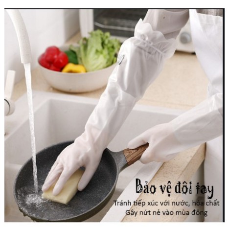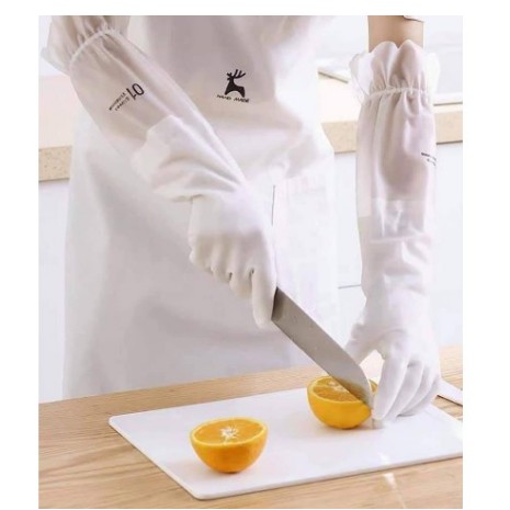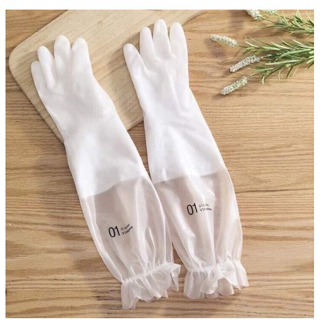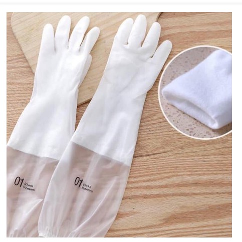 Tên sản phẩm: Bao Tay Rửa Chén Cao Su Dai Không Lót NỉMàu Sắc ;Trắng