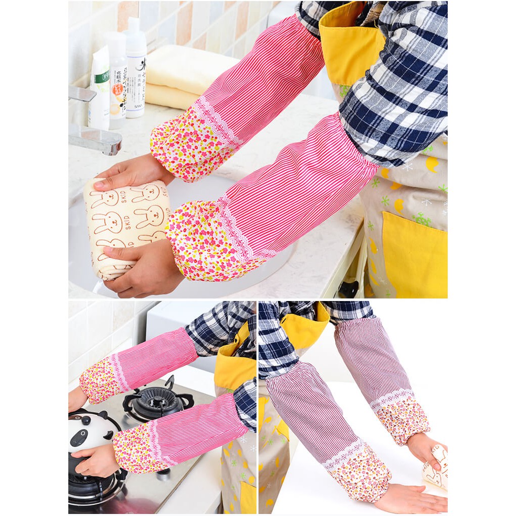 Nhà cửa & Đời sống > Dụng cụ & Thiết bị tiện ích > Găng tay, kính bảo hộ & mặt nạ || 1 Đôi Bao Tay Rửa Chén Phong Cách Hàn Quốc Bao Tay Áo Chống Bám Bẩn Vân Hoa KẻCòn hàng