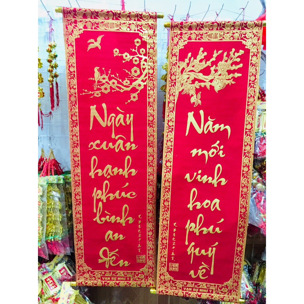 Nhà cửa & Đời sống > Trang trí nhà cửa > Khác || 1 đôi câu đối đỏ, liễng trang trí tết 20x70cm in chữ Việt Nam làm từ vải nhung đẹpCòn hàng