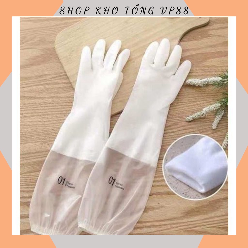 [1 Đôi ] Găng tay cao su siêu dai, siêu bền loại dài - lót nỉ có chun bo 88237 SHOP KHO TỔNG VP88
