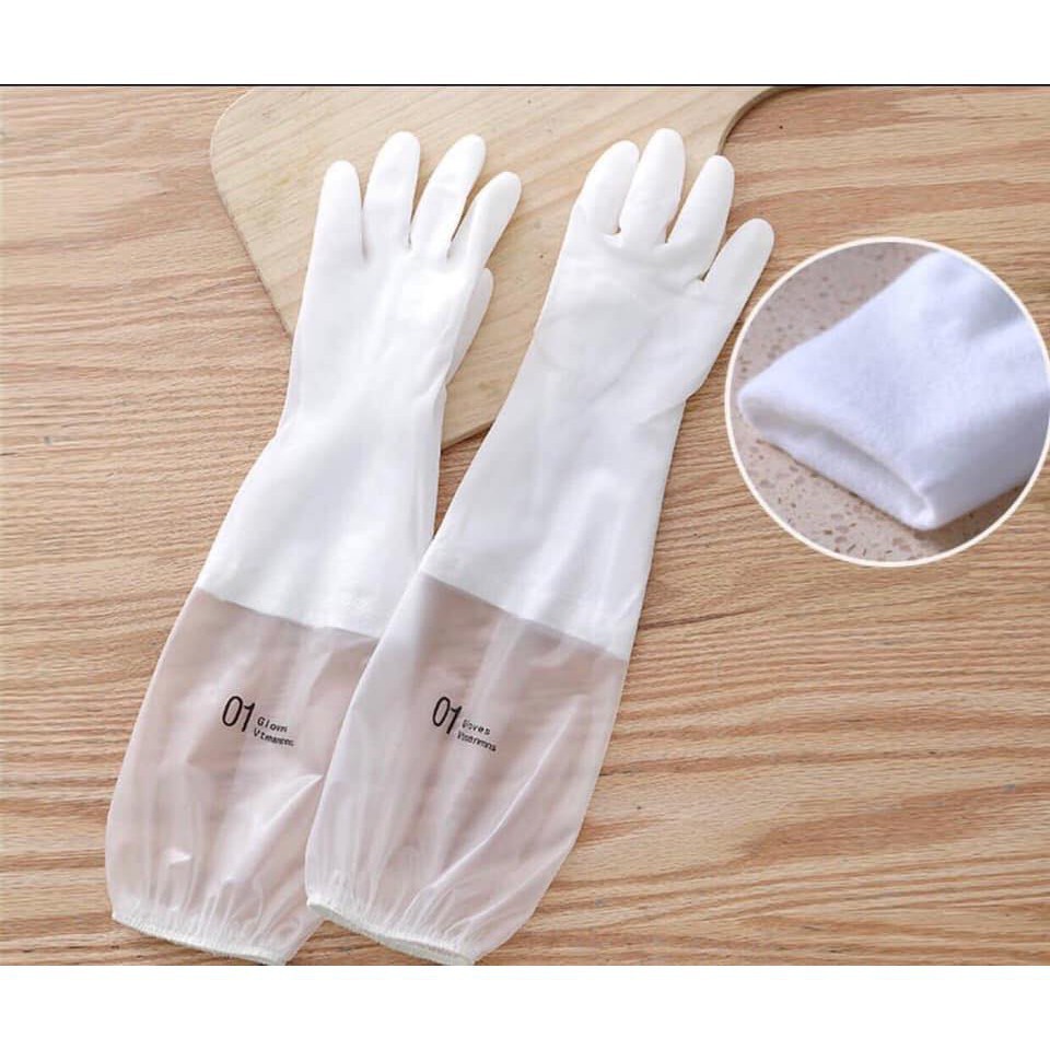 1 ĐÔIGăng tay cao su siêu dai, siêu bền loại dài - lót nỉ có chun bo 88237 SHIP SIÊU TỐC 88