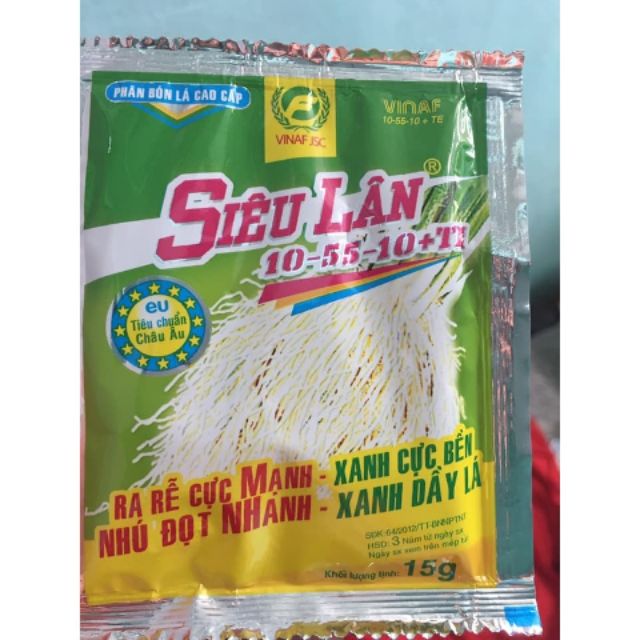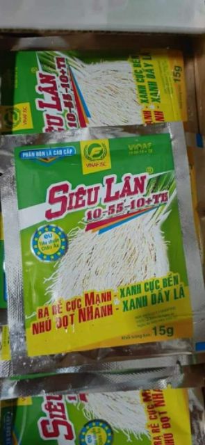 1 gói siêu lân 10-55-10+ TE chứa hàm lượng lân cao giúp bộ rễ phát triển mạnh, giúp hoa ra nhanh và đều