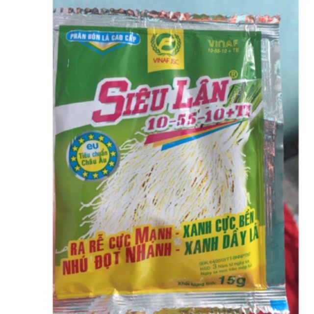 Phân bón cao cấp Siêu Lân (dạng bột) chứa hàm lượng lân cao và các vi lượng cao cấp ở dạng chelate giúp cây trồng phát triển bộ rễ nhanh vào thời điểm gieo cấy và cây con. Tăng cường phân hóa mầm hoa, hạ phèn nhanh, giải độc cho cây trồng khi bị ngộ độc hữu cơ.RA RỄ CỰC MẠNH- NHÚ ĐỌT NHANH- XANH DÀY LÁ