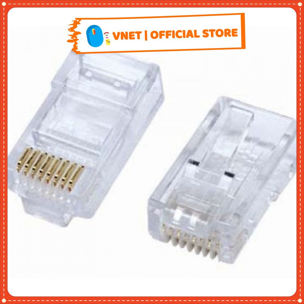 Hạt mạng RJ45 COB Cat5e, chân tiếp xúc mạ đồng chống oxy hóa. Giúp đường truyền ổn định.