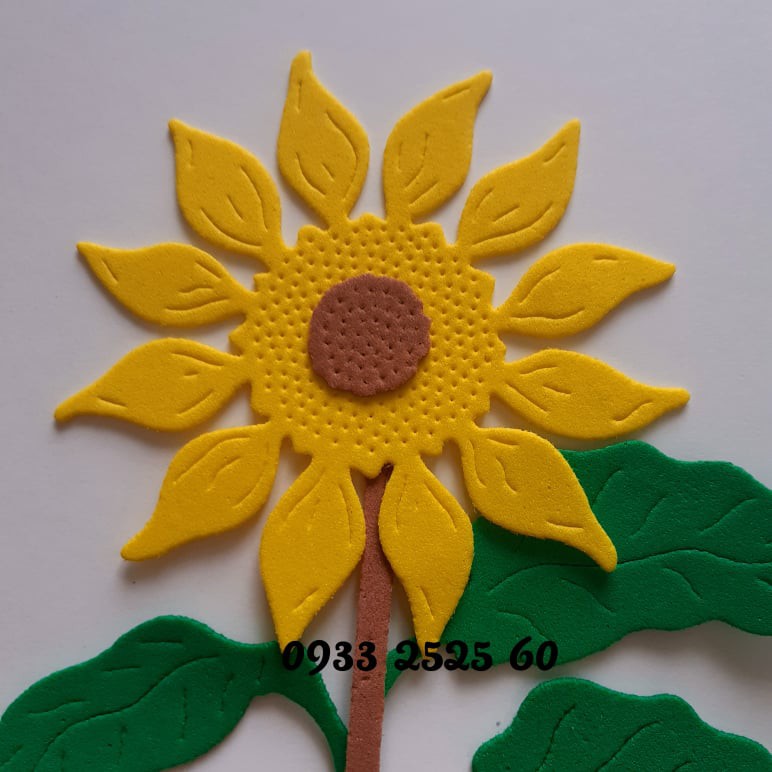 Giới thiệu 1 hoa hướng dương bằng xốp, 7.2cm- Hình trang trí thiệp, tập, sổ, scrapbook, bookmark_ xốp mầm non, thủ công mầm non