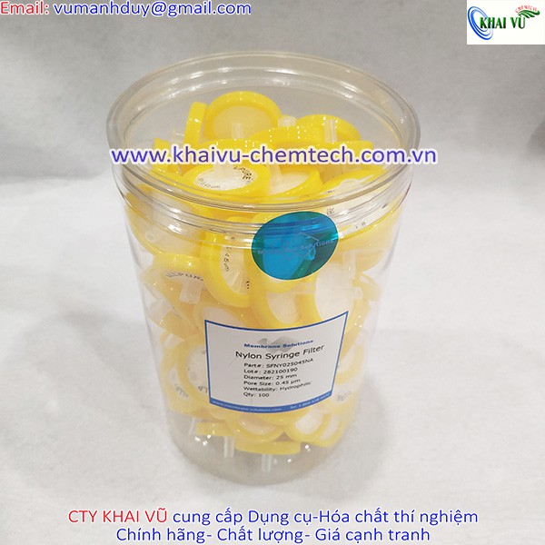 Công ty KHAI VŨ chuyên cung cấp Nút lọc Syring lọc Phin lọc sắc ký PTFE Nylon cỡ lỗ 0.45um (100 cái/ hộp) hãng Membrane Solution - Mỹ.