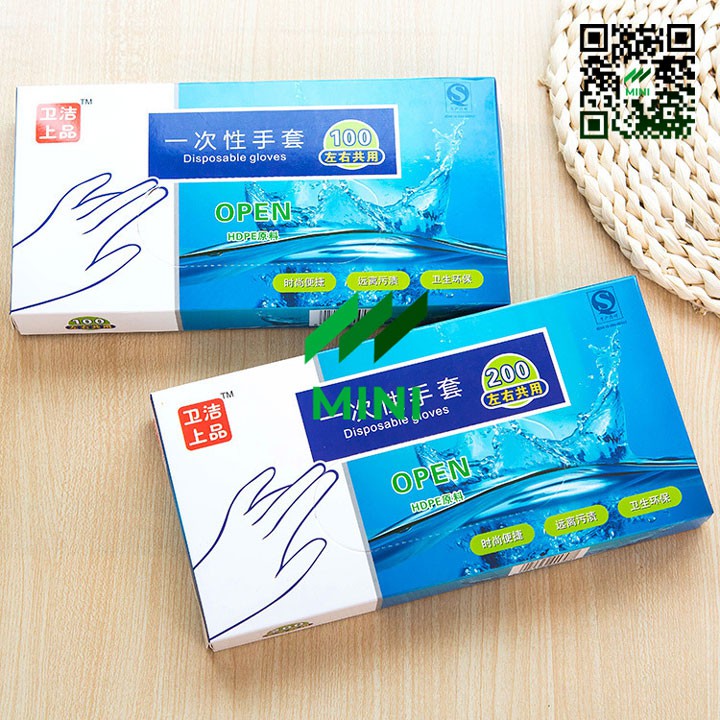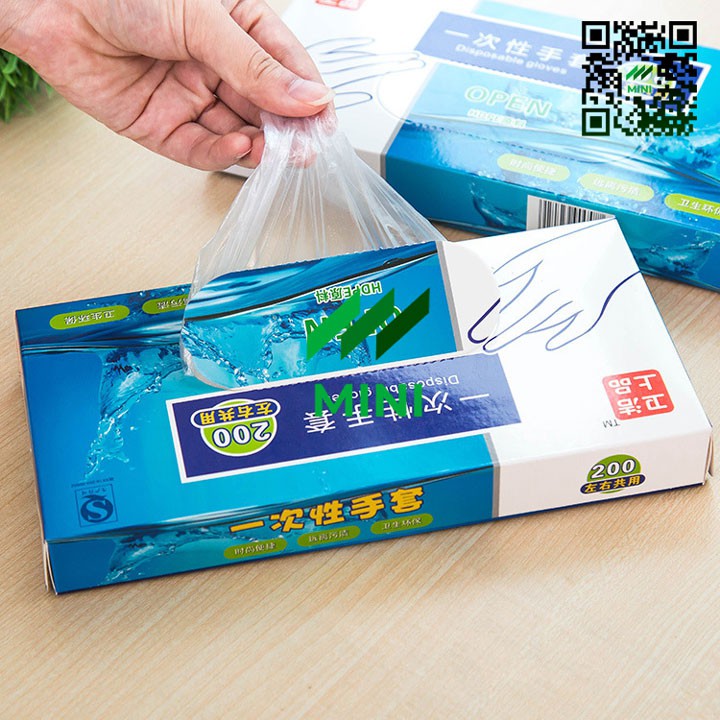 [1 Hộp / 200 chiếc] Găng tay nylon dùng 1 lần