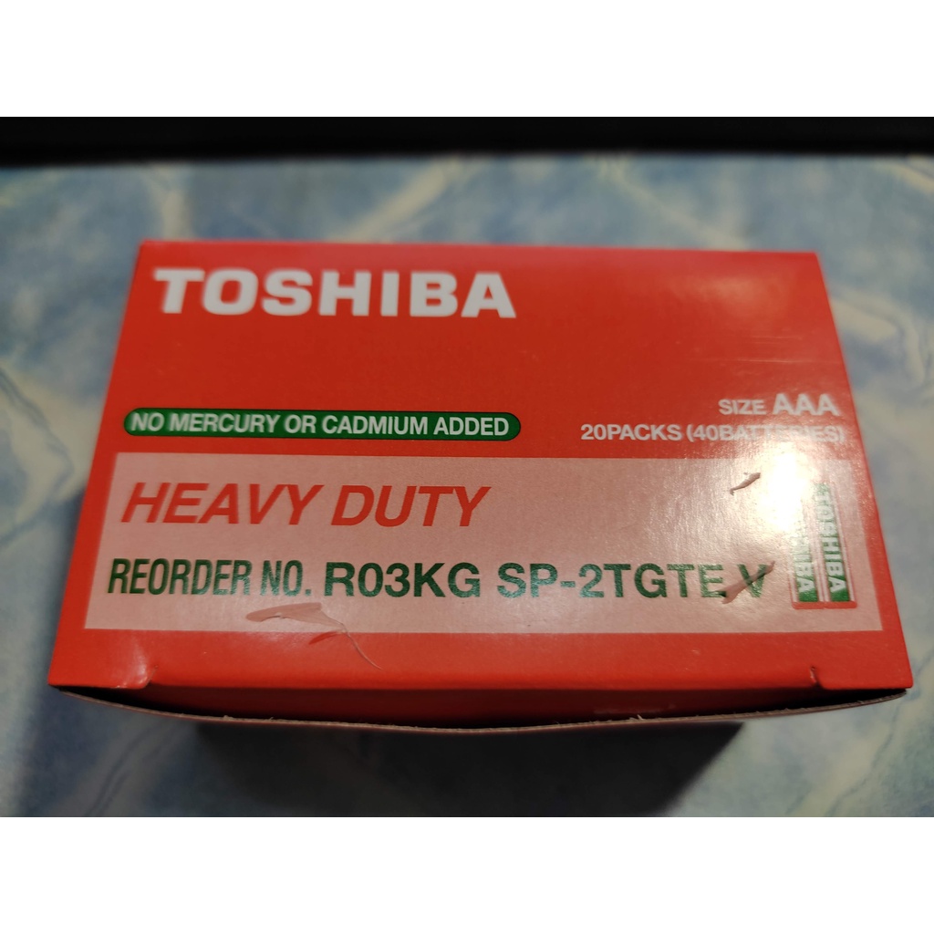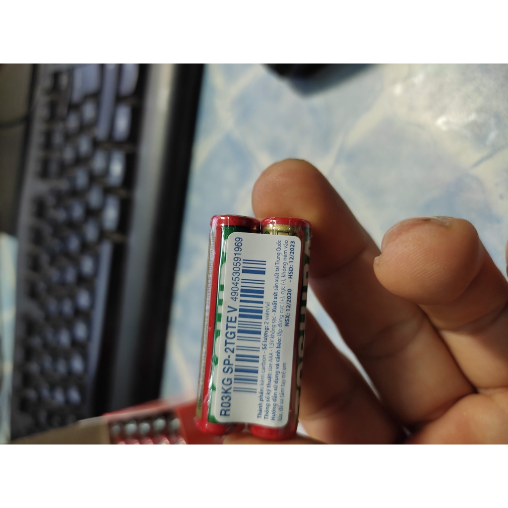 Pin tiểu nhí 3A Toshiba R03KG SP-2TGTE V Thành phần: kẽm Carbon. Số lượng: 2 viên / vĩ. 1 Hộp 40 viên 1.5V - không sạc Sản xuất tại Trung Quốc Lắp đúng cực + và - . Không ném vào lửa Để xa tầm tay trẻ em Lắp Remote tivi/ máy lạnh. ...Giá ROCKY