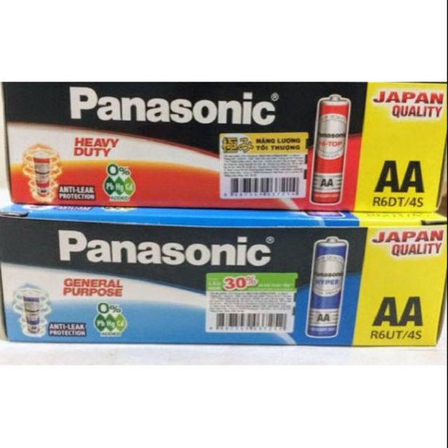 Pin Pana đỏ có dung lượng nhìu hơn Pana xanh chút.Pin tiểu AA LR6 Panasonic Hi-Top Carbon R6DT/4S 1.5V gói 4 viên chính hãng