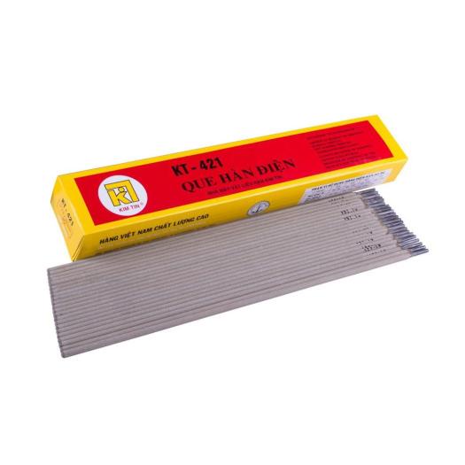 KT-421 là que hàn dùng cho mối hàn thép cacbon và thép hợp kim thấp.- Mối hàn sáng, láng, dễ bong xỉ, nhẹ điện, ít khói và bắn toé.