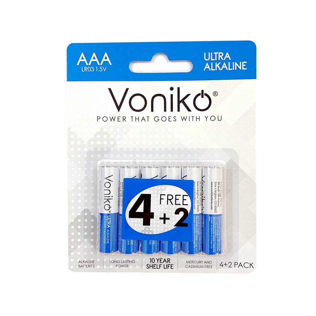 PIN AAA VONIKO USA Alkaline vỉ 4 viên tặng thêm 2 viên• Loại pin: Pin kiềm / Alkaline