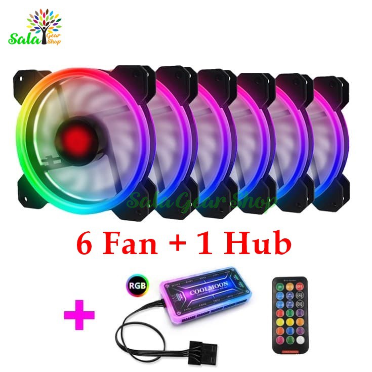 Máy tính & Laptop > Linh Kiện Máy Tính > Quạt và Tản Nhiệt || Bộ 1 Hub RGB + 6 Quạt Tản Nhiệt Coolmoon V2 RGBCòn hàng