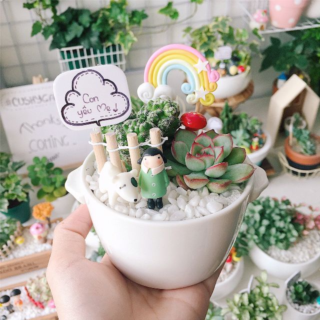 - Trang trí chậu cây cảnh, đặc biệt phù hợp với các chậu cây tiểu cảnh như xương rồng, sen đá, lưỡi hổ, trầu bà, lô hội, kim ngân,