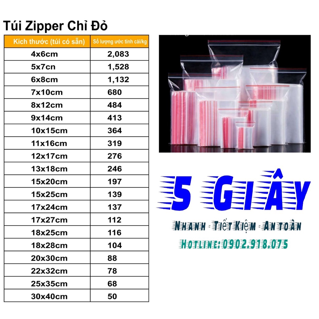 Nhà cửa & Đời sống > Dụng cụ chăm sóc nhà cửa > Túi nilon & túi rác || 1 Kg Túi zip chỉ đỏ (zip PE, zip lock, zip viền đỏ) loại dày – 5 giâyCòn hàng