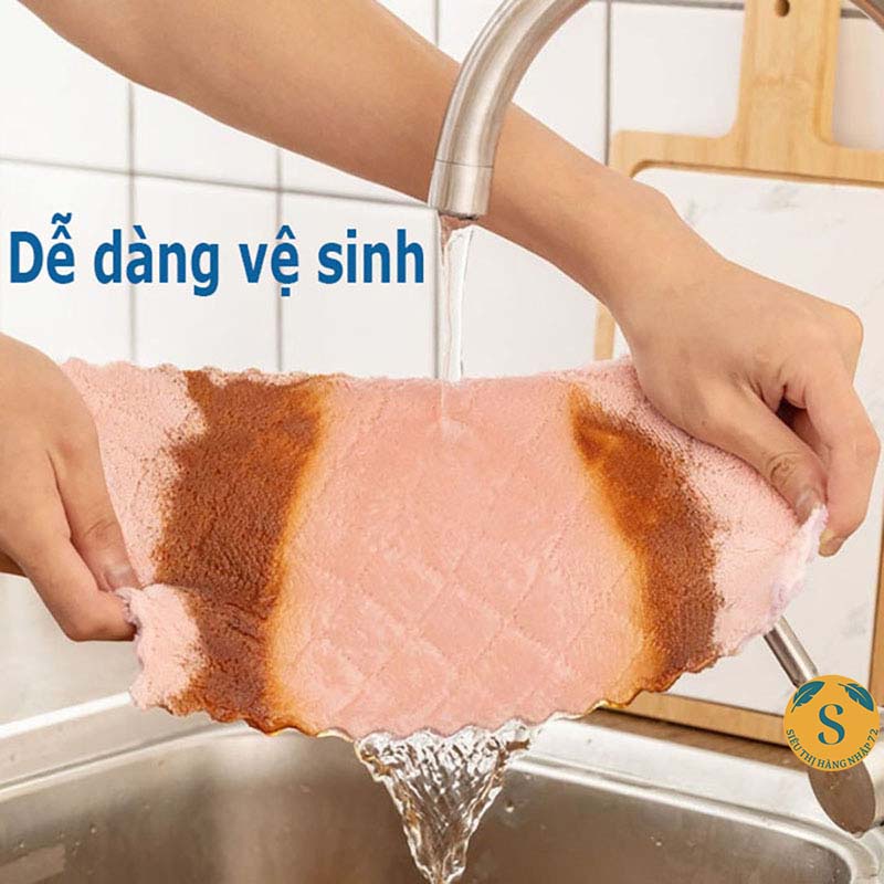 Nhà cửa & Đời sống > Dụng cụ chăm sóc nhà cửa > Khăn vệ sinh || 1 Khăn lau đa năng 2 mặt lau Bếp - Rửa bát - lau Bàn khăn thấm nước siêu tốt nhanh khô [KHĂN 2 MẶT]Còn hàng