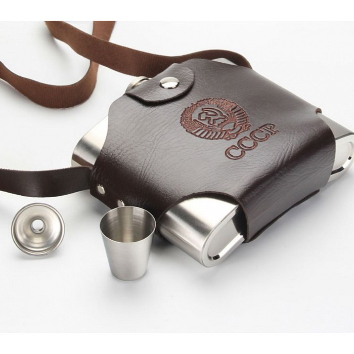 Nhà cửa & Đời sống > Dụng cụ nhà bếp > Dụng cụ pha trà, cà phê || [1 LÍT - DÀY 0.6mm] Bình rượu inox CCCP 32oz (1 lít), dao da rời cá tính, tặng phễu & ly inoxCòn hàng