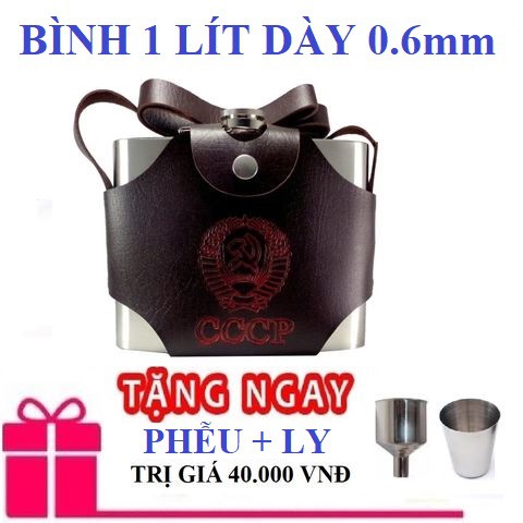 [1 LÍT - DÀY 0.6mm] Bình rượu inox CCCP 32oz (1 lít), dao da rời cá tính, tặng phễu & ly inox