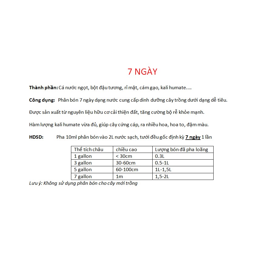 1 LÍT PHÂN 7 NGÀY - Dùng để cho cây hoa hồng có bộ rễ khỏe và kích thích giúp cây hồng phát triển tươi tốt, mạnh khỏe