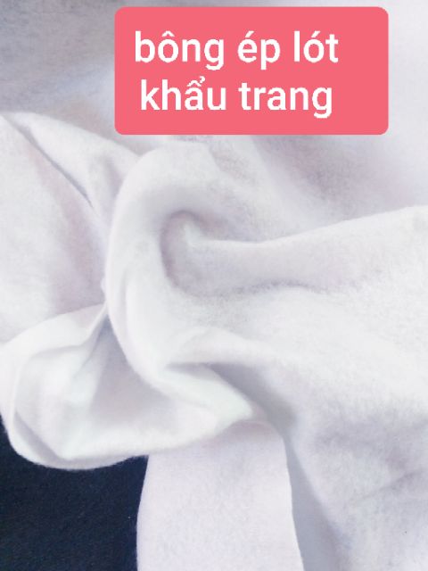 1 m bông tấmCông dụng :làm lót khẩu trang ,tính chất bông mềm mịn dai khó rách,,tác dụng chống bụi mịn ,kháng khuẩn, thấm hút mồ hôi không bị kích ứng da. làm tú ví ,vành nón ,làm đồ hamads