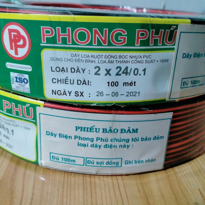 _ Dây của Cty cáp điện Phong Phú, đạt chứng nhận ISO 9001: 2015._ Dây loa ruột đồng bọc nhựa PVC.
